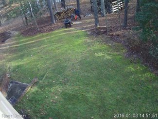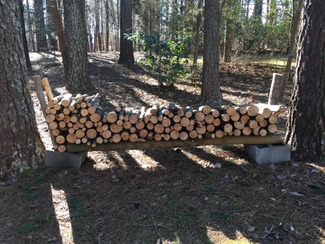 Camera footage proving I really was working! I figured out that if I put a cinder block down in front of the woodpile and wedge a log under the edge of the pile and on top of the block like I'm trying to lever the pile over I can quickly cut up the wedged log. Way faster than how I was doing it and I didn't have to buy one of the fancy log holders. A good red neck can do anything with a cinder block.
