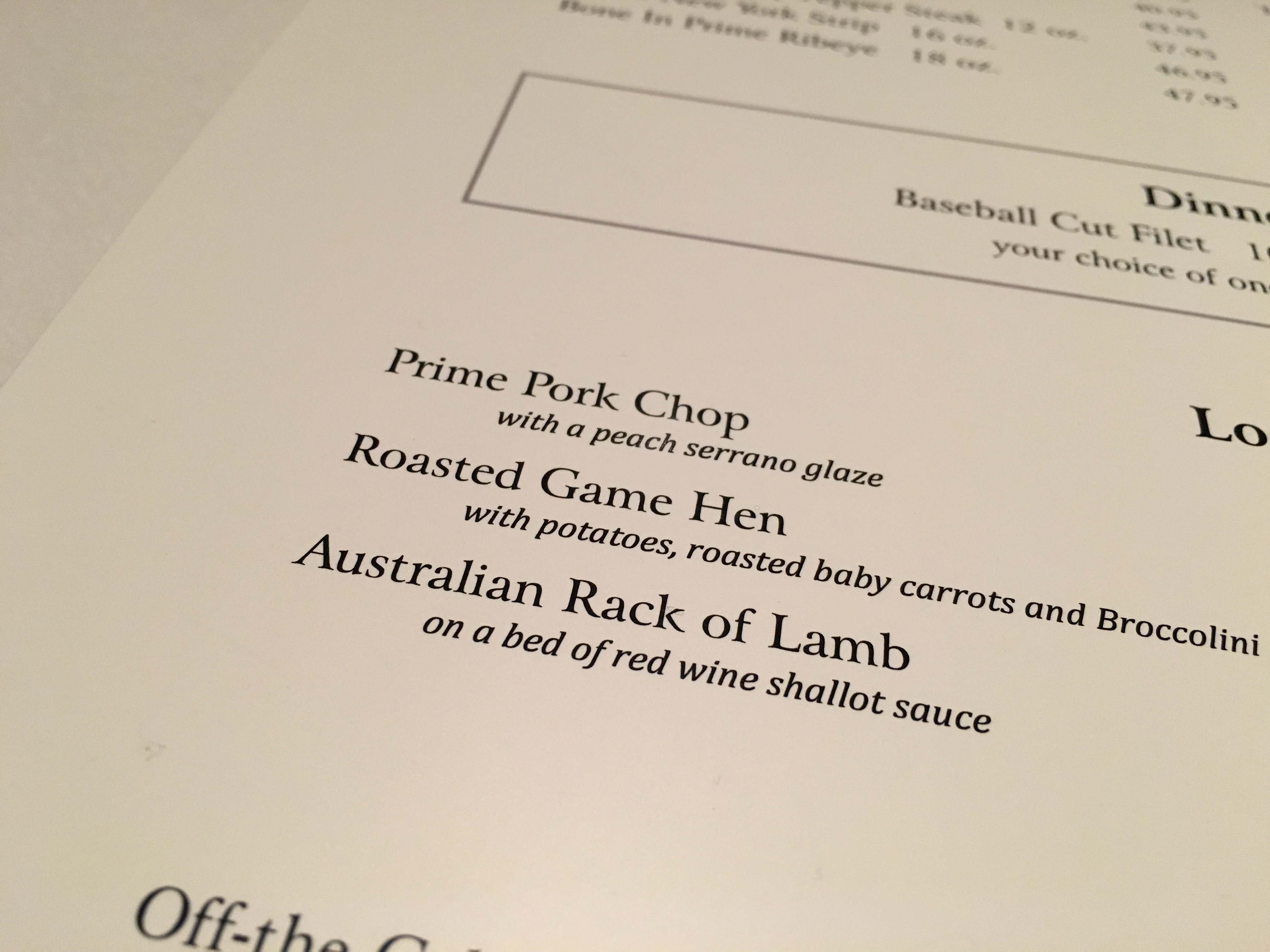 Dinner last night was typical steak house fare, and I tried to mix it up by ordering the game hen, but alas they were out of hen. Sigh. The Fujitsu dude ordering wine for the table knew his stuff, there were many good bottles to sample from. I tried all 3. :)