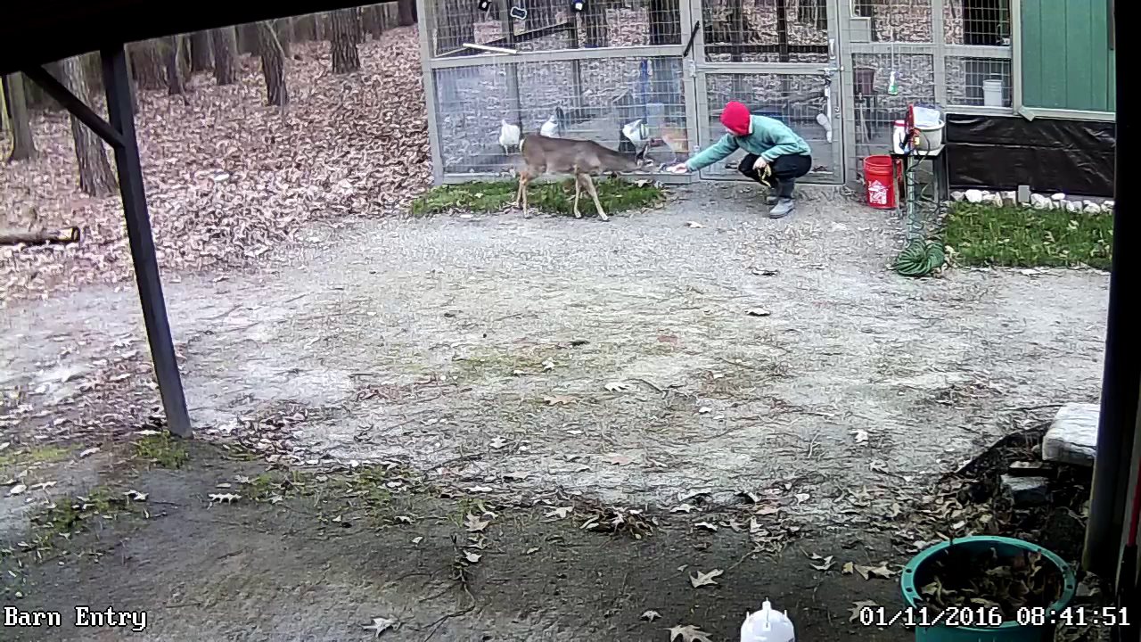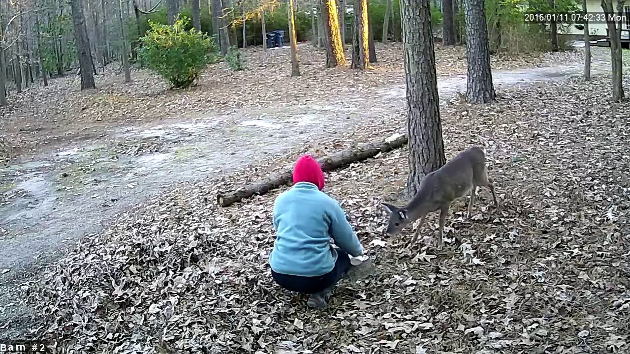 I forgot to post this earlier. The woman has pretty much got the deer to trust her.