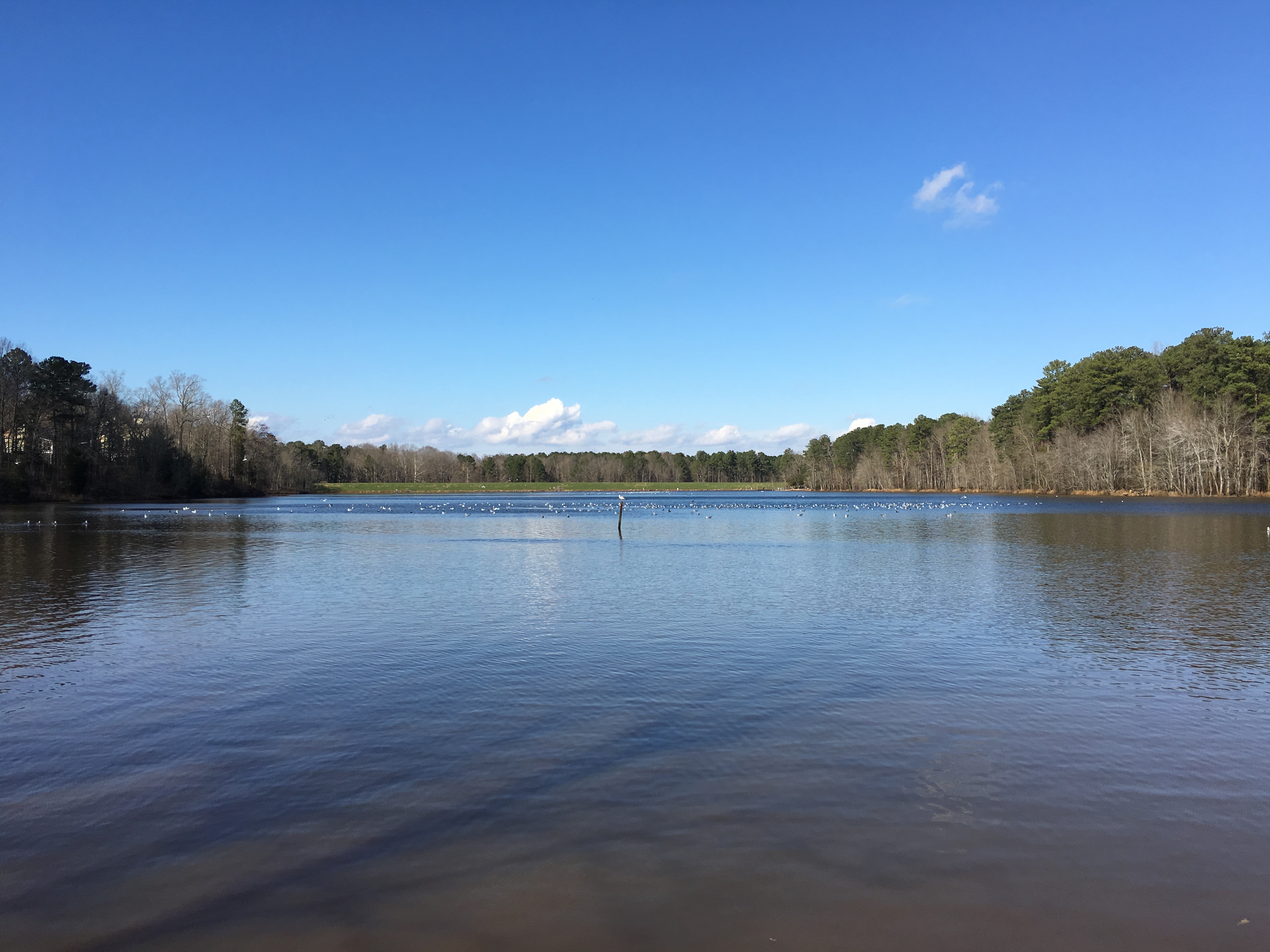 Because the weather is going to suck the next few days (cold, rain, etc) the woman and I wanted to get outside a little. We went to Bond Lake in Cary and did the lake walk trail. It's 2 miles exactly, vs the Bass Lake trail in Holly Springs that turns out to be 2.02 miles. Does each city have to have a park with a lake and a 2 mile trail? Perfect hiking weather in any case, I think it was in the high 50s or maybe low 60s.