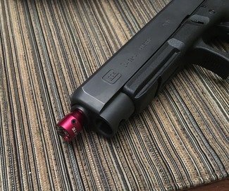 I figured out how to keep myself from looking at the laser when I'm doing the dry firing training. I found myself not looking at the sights but watching where the laser was hitting which is bad bad bad. Fancy new systems use IR lasers, I just stuck this piece of cardboard on the front of the pistol. I can see the sights, but not where the laser is hitting. Dorky, but it seems to work. It's just long enough to block the peripheral vision from my left eye. I had another one on there and just kept trimming until it was too short and then backed off 1/2" on this one. I can't practice drawing with that on there obviously but it's easy enough to do that as a separate session.