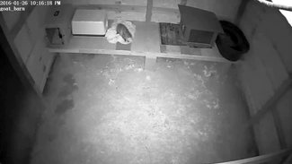 We've been having all sorts of visitors to the barn lately. Random cats, racoons, and the fox. Normally "our" cat ends up sleeping in the foam cooler house but the other night the woman noticed a possum coming out of there.