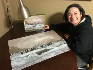 The woman has been working on this penguin puzzle for a long time now and finally finished it last night. It doesn't look especially hard, until you notice that mots of it almost the same shade of color and that it has zillions of really oddball pieces (triangles, crowns, birds, etc). I think she's going to start the mystery puzzle I got her next, or maybe one of the larger puzzles she got for giftmas.