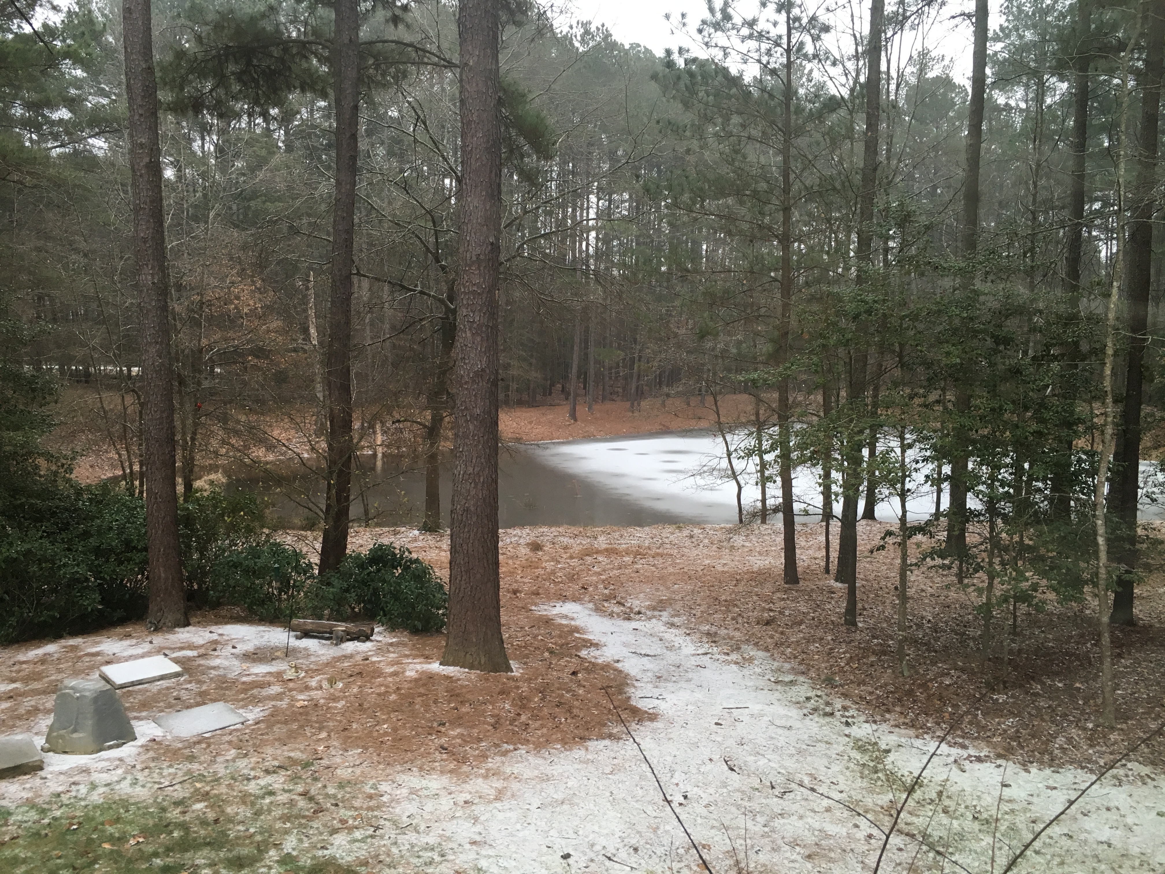 The storm last night was pretty unimpressive, but the whole town shut down anyway. I'm assuming things are going to get worse, but for now it's not even managed to get the entire pond iced over.