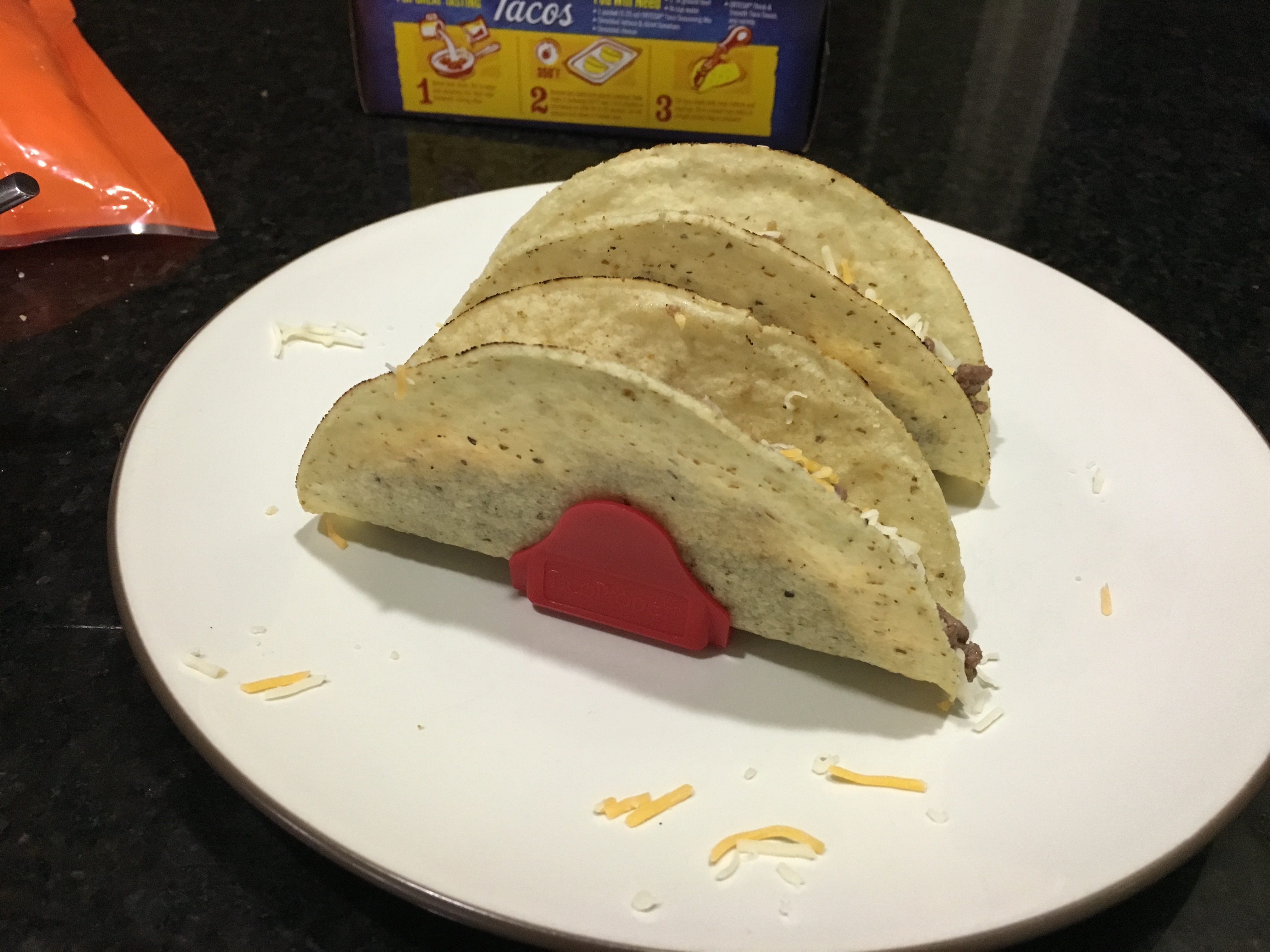 The ridiculous taco holders that I got for giftmas were tested on Friday, and they do in fact hold tacos. If you try to move the plate they just fall over and dump everything out so I'm not quite sure what they're supposed to help with. Display of your tacos I guess.