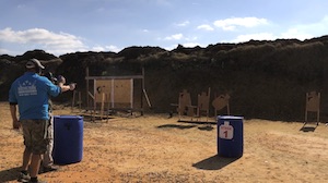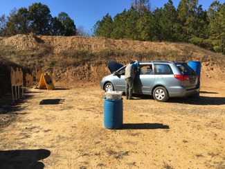 Shot a match today down at H2O fowl farms. It was IDPA, so it's got all those silly IDPA rules but it was still very fun. They have berms on 3 sides of each range so they don't just have to shoot in 1 direction. One stage they had us in a minivan and we had to shoot out the passenger side window, then the drivers side, then get out and shoot toward the front, and then move around the back and hit 3 more targets out on the passenger side. That's a lot of angles.