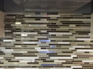 Got the hood mounted, tile up and grout done. There is that funky line in the grout but that's where the pro installer had trouble getting the tile up under where the microwave was. I had no choice but to continue the tile above that. Fortunately no one will notice it, or so I hope.