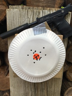 Picture 1 shows the new target and to the left you can see the log I was using. Cutting 2" off the log will get rid of the lead so I'll do that at some point. Picture 2 shows the target with the first layer removed and you can see a couple of bullets penetrated and stuck into layer 2. The third is just me showing a target, which doesn't look all that impressive except for the fact that the rounds are clustered around the center, not strung out low/left like they used to be. I'm getting better at trigger control. I also realise I need glasses because my groups are better when I'm wearing my reading glasses, but I'm not ready to go there yet. If I can master trigger control then I can worry about seeing later.