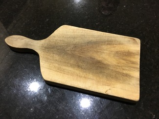 Back when I was a kid I used to make ramen for myself and just put the pot on this cutting board to eat it. I mean, no reason to dirty a pot and a bowl, right? When I went to college I asked to take the pot and cutting board with me, and mom said no. The cutting board was made by her father and she didn't want to give it up. Now that dad is cleaning out the kitchen of old stuff in preparation of his new woman moving in (frightening prospect!) I wanted to grab the cutting board.
