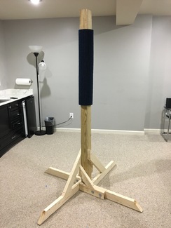 I did however build myself a pell for practice in the basement where it's not so cold. I had to make two of the legs come off (or at least apart) so I could get it through the basement door. Will also be handy when I have to move it out of the main room into the dirt room for storage when guests are here.