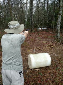 Sneaky took a picture of me shooting at the farm. It was really warm out, and just starting to rain. Strange weather.