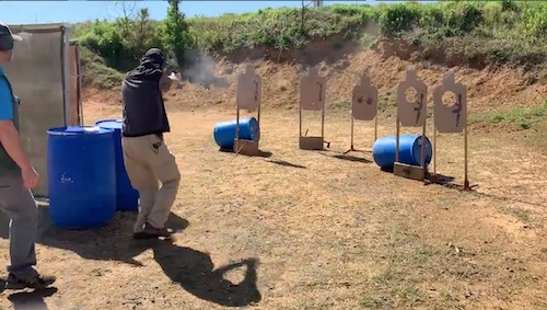Hiers lent me his Kimber K6s revolver to try. Jason and I shot it with 38+p and 357 rounds. With 38 it was fine, with 357 it was too painful to shoot. I fired 2 rounds, he did 5 but that was it. Sure, you could use them if you had to, but you would not want to. We also fired it next to his early 1900s Luger. We called this the "newest of the old school" and the "oldest of the new school".