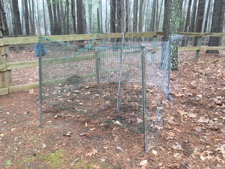 The woman wanted another dogwood tree over by the goats so we got this little guy. I used only scrap wire to make it's little prison so it looks pretty bad, but it should keep the deer off until the thing has grown a bit.