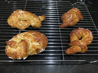 In the spirit of baking, I tried making pretzels. Ugly, but they tasted OK.