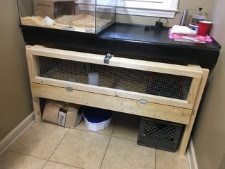 Yes, yet another hutch. This is a two chamber version like the one on the youtube channel I was watching has. This way the birds have somewhere to go to get out of the cold if they want, and he's got a sand bath inside his. I ran out of plywood and had to get creative inside, but otherwise it's a solid build. Hopefully between the two brooders and two hutches we should be good until spring.