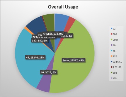 Since I shot it, I added a spot for 17HMR on the spreadsheet and put the savage in there. When I updated the yearly / total graph thingies it shifted the colors up. Now 9mm is a funky purple. Kinda like it.