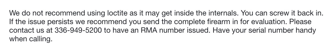 Rumor on the internet is that if it happens 3 times, you send it back and they replace the whole gun as it's 'unrepairable'. Guy in CA was pissed because he had to pay another NICS fee and wait 10 days again to get 'his' gun back.