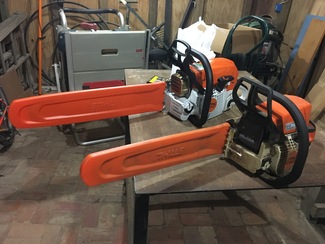 Big wood can be solved with a big saw! After putting it off 6 months ago, or maybe 9, I went ahead and got the MS362 saw I had specked out earlier. They make saws that are just as powerful but cheaper, but they're also heavier and lack some cool features (like captured nuts on the side plate, which seems trivial until you've dropped one of them while working on the saw in the middle of a job and then spent 20 minutes trying to find them on the ground in the sawdust pile). Figuring this is the last saw upgrade I should need. It comes with a 20" bar, can drive a 26" bar if I need to get that big, and anything larger than that is probably not something I should be messing with anyway.