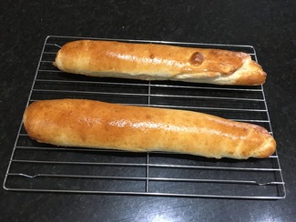 Instead of trying to make 6 correct length hotdog buns for tonight, I just made 2 long ones and we can cut them to the correct length for the bratwursts. Smart eh?