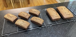 Using up some of that zucchini left over from the BBQ the woman went to but didn't end up grilling at... I give you... my zucchini bread fleet: