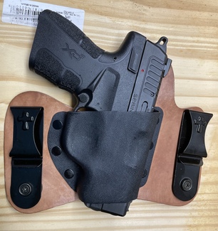 There aren't a lot of holsters to choose from, and since it's unknown if dad would actually carry it (much less pay me back for a holster), I just modified the old XDs holster to fit. Sean's heat gun makes short work of the kydex softening and now it looks like that's almost kinda a commercial holster for it. If you squint, and don't look to long.