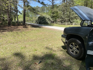 Drug the truck across the yard and got the cable all tensioned and ready for use. One feature of cheap winches, the line speed under load is slow. Really slow. Won't win any races but it will get you out of trouble. Eventually.