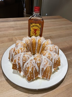 I made the production fireball cake today, with 2 layers of icing with more fireball and no water and no vanilla (in the icing, the cake is vanilla). We shall see.