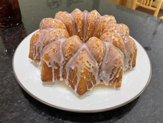 Made a birthday cake for myself, ended up giving half of it to dad and his woman (who just made it back from their river cruise trip disaster).