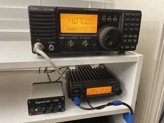 My IC7k is dead, I think I mentioned that before and I've had zero luck getting anyone to respond about fixing it. So as to not be radio-less, I setup this ultra simplified setup. No power distribution block, nothing fancy just the 2m radio setup with the headset and the backup HF rig setup for digital modes attached to the gaming PC.