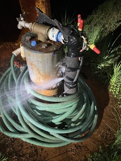 Those people weren't home and not answering the phone so one of the drunk rednecks successfully disconnected the power at the well head... with much sparking as he pulled the connection apart with the pump running. They can fix it when they're back but at least now it's not running 24/7 wasting water and power and flooding the field.
