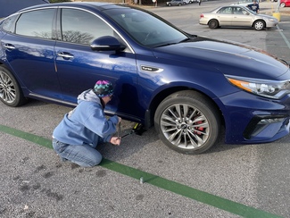 However.... on the drivers side the badge was covering a dent! Oy! Maybe it's why they did that in the first place. Oh well, a dent is better than a fake badge.