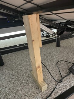 I got an adjustable bed frame and keeping my head elevated is making me snore a lot less so the woman is happy. I kept feeling that the bed was slipping and un-adjusting itself over the course of the night so I made this little brace out of scrap wood to stop that. Honestly I don't think it's actually slipping, the brace wasn't super tight in there when I installed it and it's still not really tight so either the bed isn't changing or the tiny amount of pressure from the brace is keeping it in place. I suspect the former.