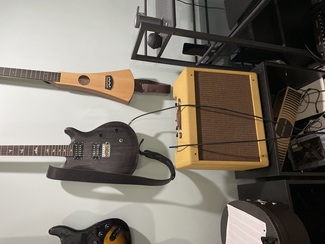 Used some scrap to make a quick amp stand. No reason the amp can't sit right on the ground I just thought this would protect it from careless vacuuming a bit.