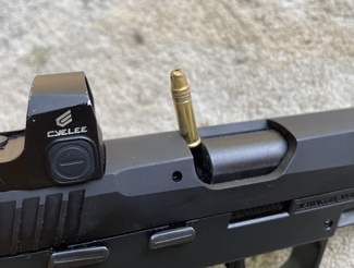 The SCS has been moved down to the G21. I didn't know it would fit but it does. The MOS depth and screws are the same, it's just that the cut is a little wider. Looks good enough, and now I have a dot on the 45.