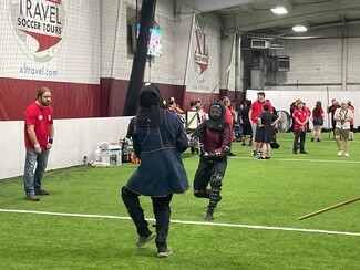 There was also a German chick who I fought with these funky leather wrapped saber like things that looked like some sort of Star Trek weapon. Different footwork, different attacks and defense... I did not do well and got burnt out quick because I forgot to breathe. Doh.
