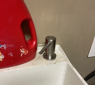 On my TO DO list for the last six months was to install this soap dispenser in the laundry room sink. It came with the new kitchen faucet but the woman didn't want it in the kitchen and I didn't want to just toss it so I put it here. Now it will probably sit empty for another six months but whatever, that's not my job.