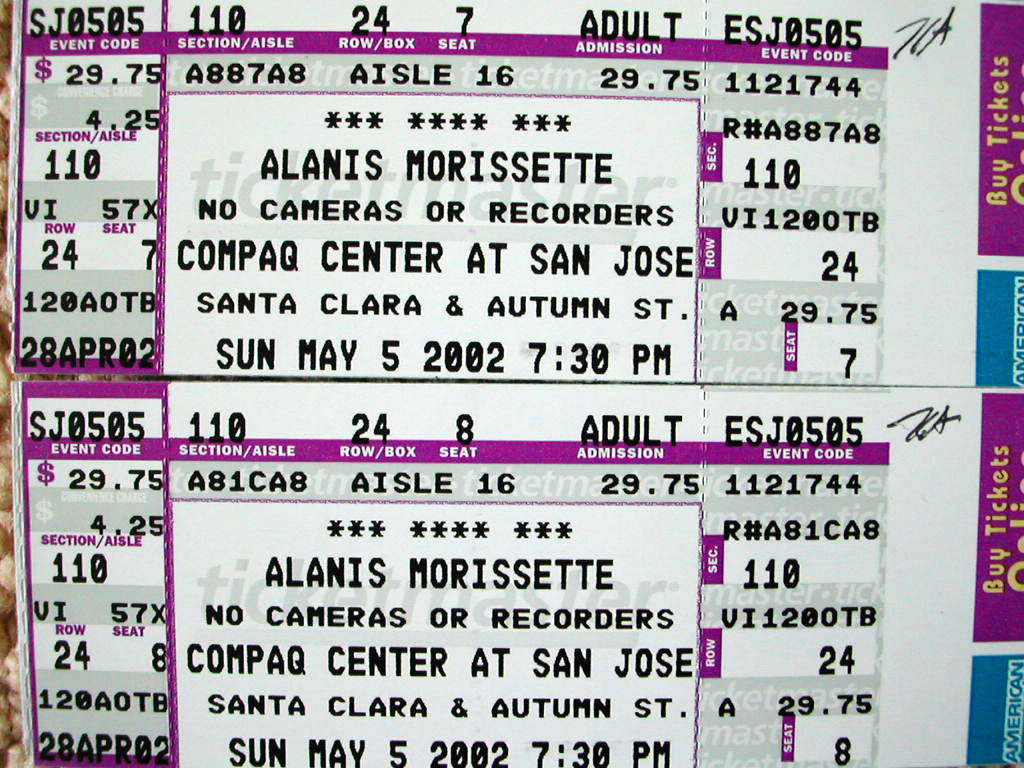 It's probably better that you don't ask. :) I just wanted to get out somewhere and this was the first thing I could think of (a concert) after all the music stuff Paul was going on about last night. I went down my MP3 list and found this concert next weekend. Cool. It's good Alanis had something or I would be at Britney Spears show on 6/2/02 (the next artist on my MP3 list). The B52s are playing at Wente toward the end of summer... hmm....