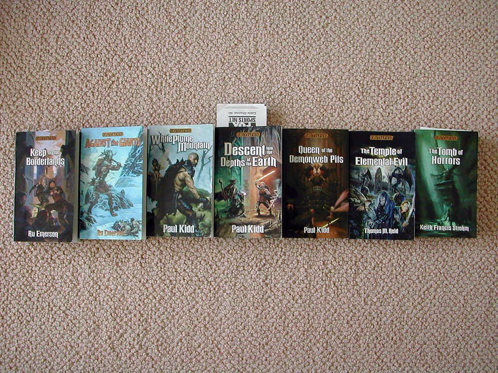 On this trip I picked up the last two missing D&D novels. Here is the complete collection of Greyhawk novels. Using the sharpen filter really put a lot of artifacts in the image. The old Sharks ticket book mark shows where I am in my reading. Did I mention that I'm finding faults in the editing of the books? There are a couple of narration slips in there that were noticeable even though I wasn't looking for any mistakes. What was the editor doing? (other than laughing all the way to the bank :)
