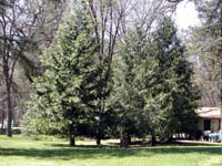 By far the coolest thing was checking on my Christmas trees. When I was small (like 5-8) I used to get one of those little living trees at Christmas (the kind they sell in the grocery store). Anyway, dad started planting those trees on my grandmother's property. Here, 25 or so years later you can see what's happened. They've gone from 1' high to what, 40'? It's hard to say but you can see the house that's been built under them for scale. Don't they just look like giant miniature Christmas trees?