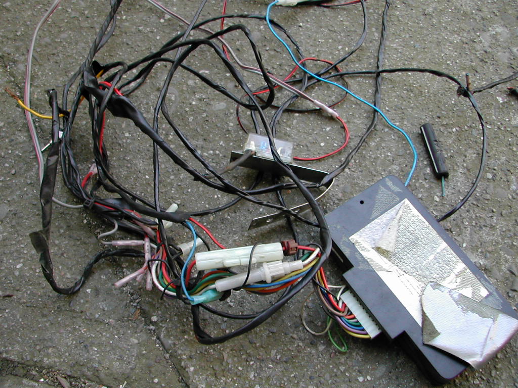 Couple more pictures to post here. One is the remnants of the old alarm that was still in the Montero. I had to track down all those nasty wires and un-route them from the various locations they were run to. Someone cut out most the sensors and whatnot, but left the wire. The other is a closeup of the 3rd party EFI controller that's making the BMW run correctly. I was tweaking with it just a bit today to see how it effects the bike. You can really screw stuff up if you try.