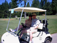 Saturday night Kelly5 and I went up to Pioneer so we could golf with dad on Sunday for father's day. It was a pretty good time and no one got too badly sun burned (I missed a few spots on my leg so I'm a little crisp). Dennis says I'm too yuppie now with the facial hair, dressing all fancy (I was still dressed 'business casual' from the party earlier that day) and playing golf. Do I look too yuppie here? I'm not dressed funny.