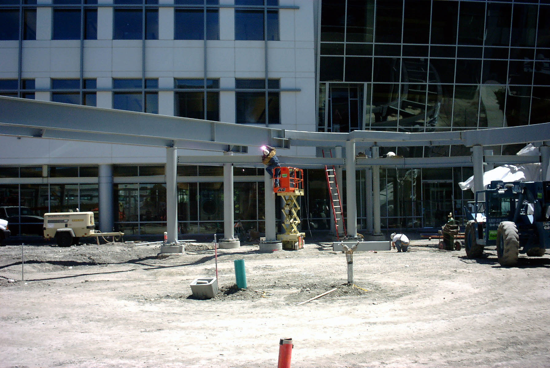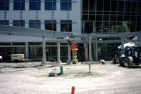 For a welcome to the building gift they gave everyone an official nVidia sunshade for their cars (since there are no trees for shade). It's too small to actually fit the window, but it's still a nice gesture. I was going to go buy a shade but maybe I can make this one work. The walkway is coming along nicely, BTW. Here are dad's guys hard at work, um, welding stuff.