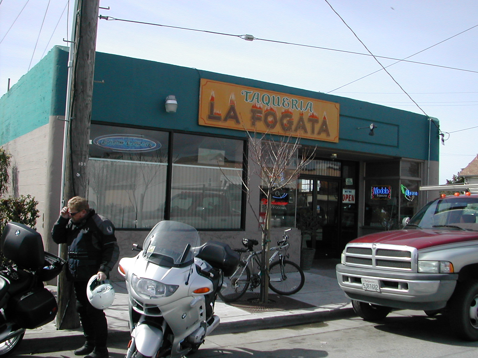 The pictures from the ride are up on the main page. Of interesting note is that I put "La Fogata" into the google translator and got "the bonfire". That explains the spicy salsa and the simulated fire on the sign: