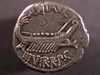 After the hike I went with dad so he could pick up his new car (a 500SL Mercedes convertible, a total, total, total old geazer car). Then we went to the old coin store. I should not have gone. :) I got a neckless with a coin minted in 32 BC. Yes, it's 2033 years old. It's a Marc Antony 'Legionary Denarius', a coin used to pay the soldiers. You can get all sorts of grades of coin, from really poor stamped, very off-center stuff for $30. Mine is a perfectly centered, excellent stamping (rating is very fine+++ or something). I saw a few of the same coin and you really can tell the difference. Here is a picture of one off the web. You can see how this coin (for sale for $375) is not very good because the strike on one side is way off-center and you're missing a lot. The text at the bottom is also sorta blurry. Mine is very crisp and you can clearly see "LEG XXIII". I don't know if it's more or less rare because it's toward the end of the series (they say 20-something legions, 23 is getting up there and everything on the net is in the 10-12 range).